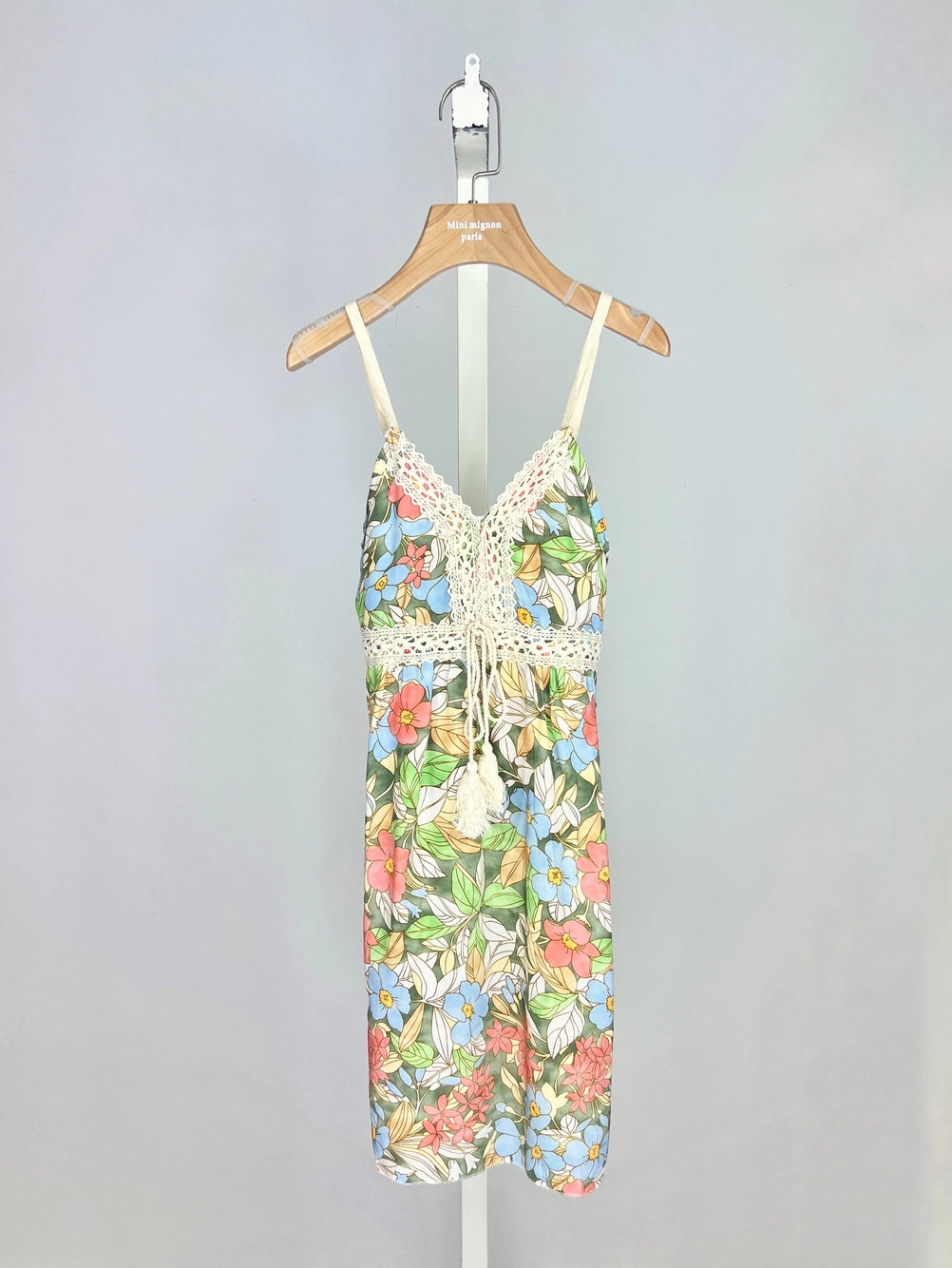 Bohemian Floral Dress with Lace and Adjustable Straps For Girls